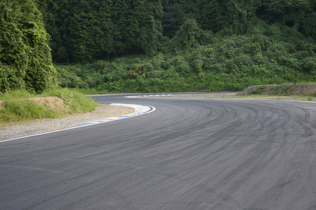 避けて後ろを確認したら、右曲がりのレーンの横にいた。