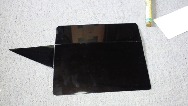 支えが左しかないうえに、画面全部を覆わせるために長くなった上側のひさし。