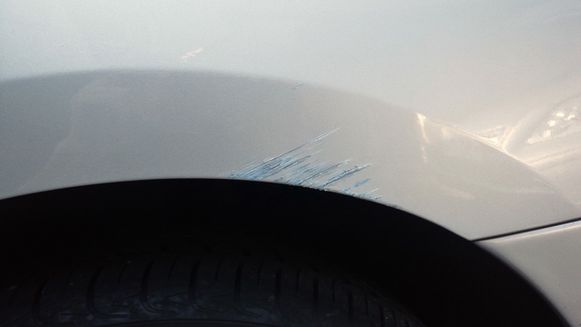 左リアフェンダーをこすったようだ。