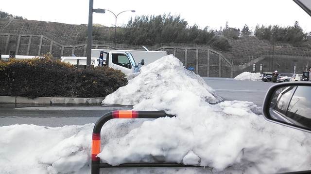 除雪で取り除いた分の雪の塊が、各所で見られた。